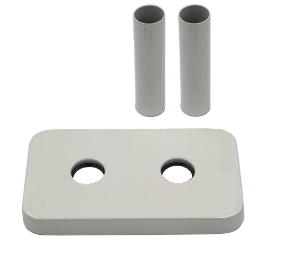 Zestaw dekoracyjny poprawiający estetykę wykończenia montażu zaworów grzejnikowych w łazience.