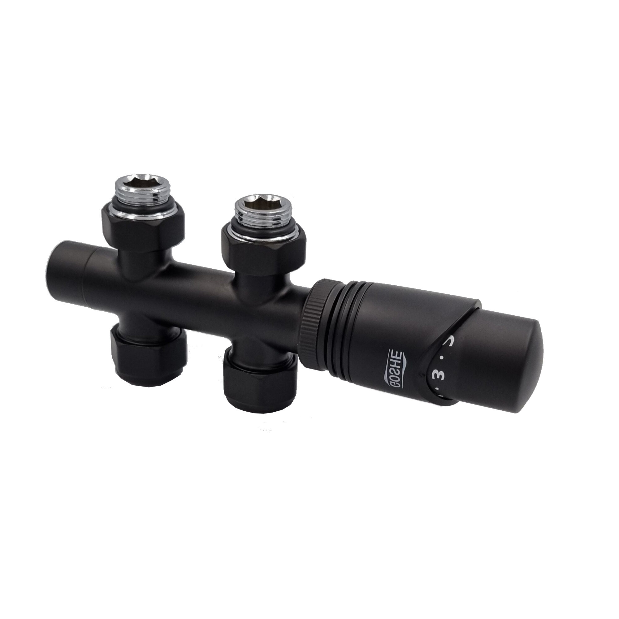 Zawór grzejnikowy z głowicą termostatyczną . Stosowany jest do podłączenia grzejników łazienkowych. Komplet przeznaczony do każdego typu grzejnika o rozstawie 50 mm. Estetyczny, wysokiej jakości zestaw termostatyczny służący do podłączenia grzejnika do instalacji CO, umożliwiający precyzyjne ustawienia temperatury w pomieszczeniach.
